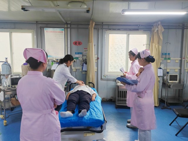 不同于單項技能比武,本次OSCE考核最大的特點是高度模擬臨床真實情境,強調(diào)工作的連貫性和應急判斷能力??己朔譃槿?,環(huán)環(huán)相扣。第一站,護士化身為洞察入微的“偵察兵”,在有限時間內(nèi),面對由專業(yè)人員扮演的“標準化病人”,進行詳細的病史采集和精準的身體評估,此站考驗了護士的溝通技巧和觀察能力;第二站,護士化身為精準高效的“戰(zhàn)術家”,基于第一站的評估結果迅速提出核心護理問題,并立即采取相應的護理措施;第三站,護士化身為沉著果敢的“突擊隊”,面對患者病情驟然惡化,第一時間識別危急值,果斷采取心肺復蘇、急救用藥等緊急救治措施。這一站是考核的重中之重,直接檢驗護士在壓力下的心理素質、快速反應能力和搶救技能。
